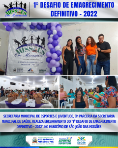 MISSÕES EM MOVIMENTO: ENCERRAMENTO DO “1⁰ DESAFIO DE EMAGRECIMENTO DEFINITIVO – 2022”, EM SÃO JOÃO DAS MISSÕES