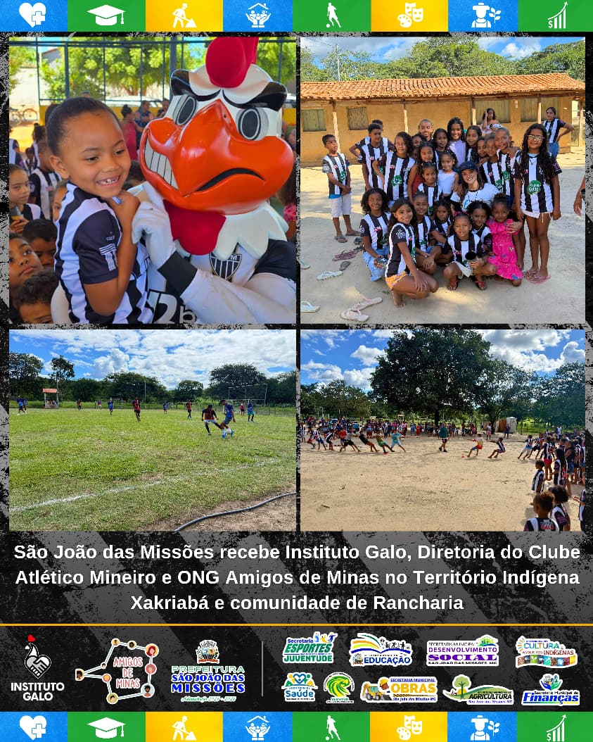 No final do mês de março, nos dias 28 e 29, a Ação Social Galo Doído, do Instituto Galo em parceria com a prefeitura Municipal de São João das Missões-MG e Ong Amigos de Minas, desenvolveu nas Aldeias Pedra Redonda, Sumaré e Rancharia, atividades esportivas recreativas com 259 pessoas, crianças, adolescentes, jovens e adultos, sendo Corrida Velocidade (134), Cabo de Guerra (134), Futsal (45), Futebol Society (80).